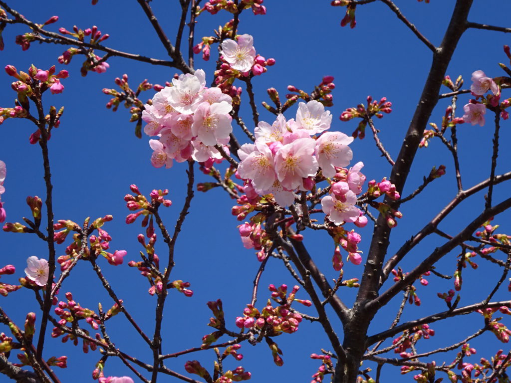例年、満開は3月末ごろなので、ソメイヨシノよりやや早め・・・というところでしょうか。