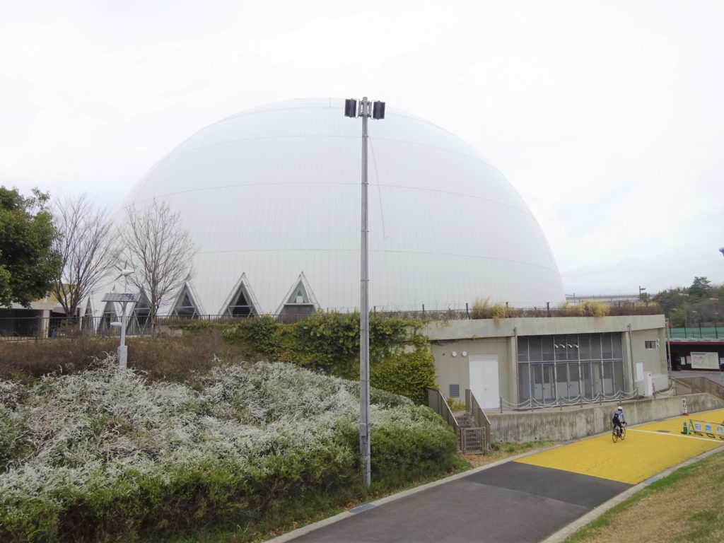サイクリングコース脇の斜面は真っ白!日当たりが良く暖かいのでしょうか。